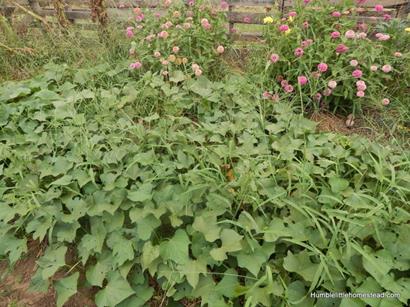 My cucumbers and sweet potatoes have grown so fast lately that I haven’t had time to keep a path cleared between them so they are all one tangled up mess. But it’s a good tangled up mess to have. 🙂 I’ve read that cucumbers, like squash, thrive when sprayed with milk. Since living here, I’ve had a hard time getting cucumbers to grow for some reason, so I’m happy to finally have a small patch that’s growing and actually producing!