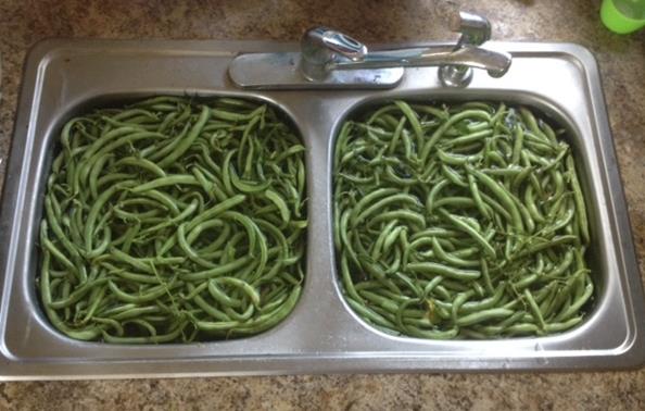 There were a whole lot of beans to pick, and yes, we had aching backs and were wondering what we were thinking to have planted them all. We ended up filling up the sink with beans twice. Luckily for our backs, not all of them came on at the same time so there will probably be another picking ready in about a week. My Mom helped pick and snap, and then she took some home to can. I canned 13 quarts, which will be nice to have in the pantry this winter.
