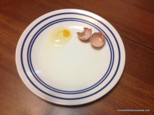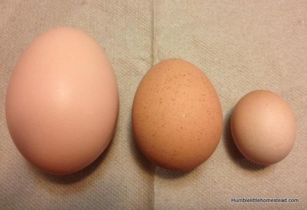 Egg on the left is an average sized egg; the one in the middle is a normal sized pullet egg, and the last is the “one forth” egg.