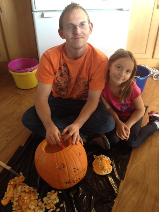 Dylan and Miley didn’t want to help out with the turkeys and thought pumpkin guts were a lot easier to handle so they carved Miley’s pumpkin…