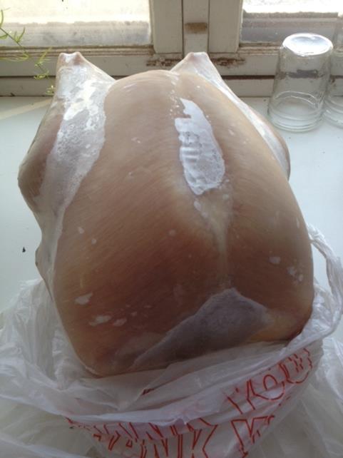 After a couple days of letting the turkeys sit in ice water, we bagged them up for the freezer.