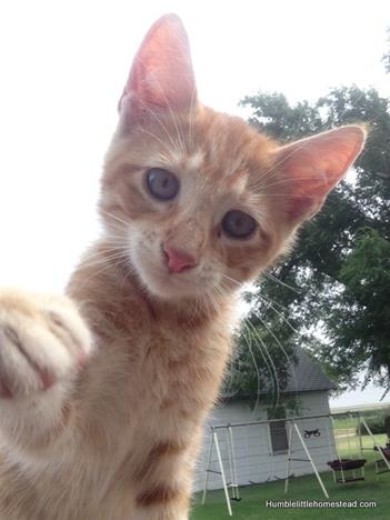This is a picture Miley took of Dusty when he was a kitten, pawing the camera as she took it.