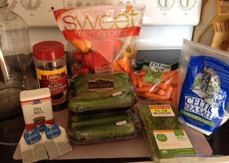 I don’t know about you, but this time of the year I tend to indulge in a lot of food I normally don’t. In fact, I kinda just throw eating mostly real food out the window and fix a lot of foods that are a tradition for us; most of which are made of a lot of processed foods that we usually try to avoid. While the food’s good at the time, I sure pay for it later. I have headaches, I’m tired and dragging, forgetful and can’t focus, and my gut… well, let’s just say it’s not very happy. So, to help offset the effects, I like to make up a large jar of fermented pickles to enjoy throughout the whole season. Normally I like to make them earlier on, like around Thanksgiving time, but this year I’m not getting around to it until now.