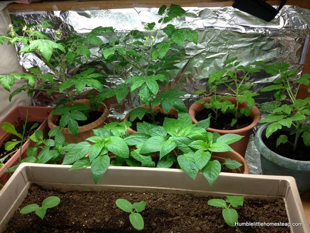 I lined some cardboard with aluminum foil to help reflect the light so it would hit the plants at different angles.