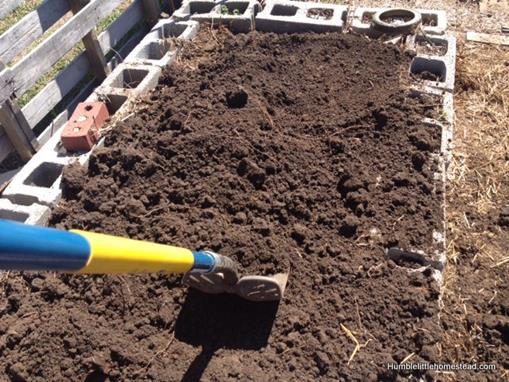 Saturday we spent the entire day bringing in compost and dirt to build up the beds. What started out being a small project of just adding a little compost over all the beds, turned into an unexpectedly larger project. Of course Michael was giving me a hard time about coming up with such a large project and making him work so hard, but…
