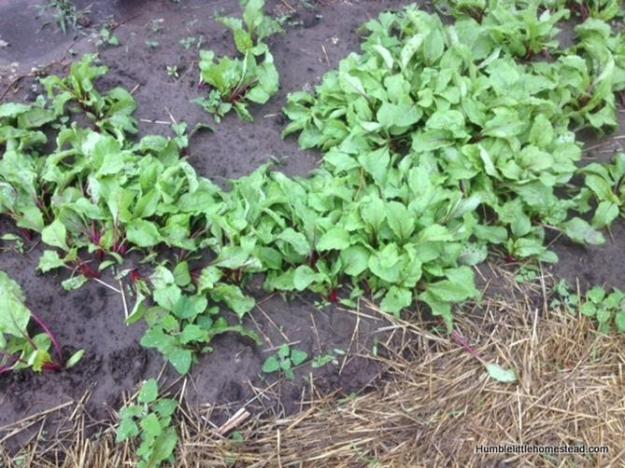 It was pouring so badly by the time we got home that we just left everything inside the pickup and hurried into the house. Once it let up, I came up with an idea. The beets all came up close together and it’s really been bothering me…