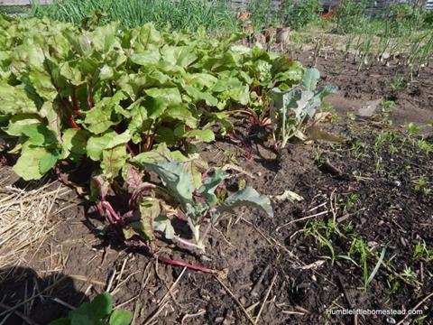 I planted broccoli in between the beet and carrots, which are both good companions for broccoli. Paring broccoli with beets is a good combination since beets don’t require a lot of calcium so it frees it up for the broccoli.