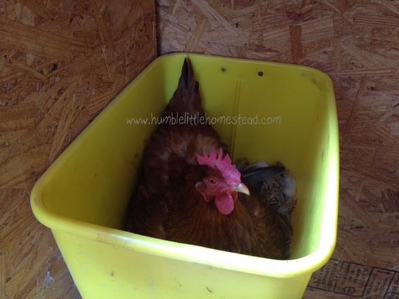 Throughout most of the summer we’ve had two and, at times, three broody hens all sharing the same nesting box. Let me tell ya, having to fight one broody hen when gathering eggs is quite a chore, let alone two or three. Normally I will take a stick, or whatever I can find, and hold the hen back while I reach in and grab the eggs. But with two or three in there, there’s no way to hold them all back, so I just brave up, go for the eggs and deal with the pain of being pecked from all different directions. It makes me laugh when my husband and kids gather eggs because off and on through the summer, they’ve come in saying, “Those (insert random not so nice word) broody hens are so (insert other random not so nice words.)” They can be quite irritating to deal with, for sure.