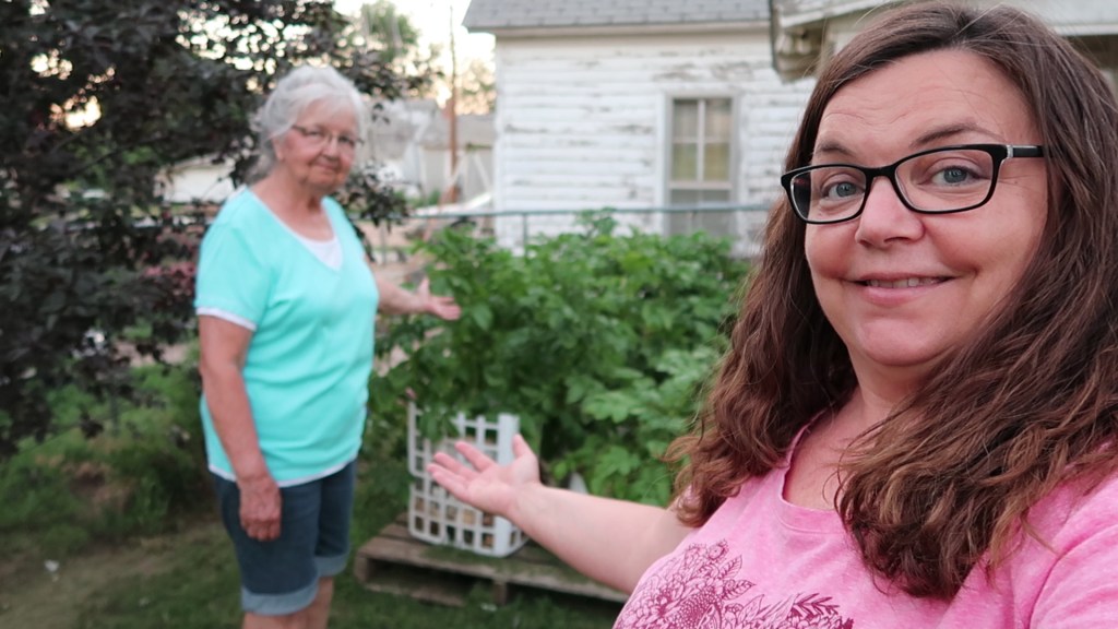 Feed sacks, laundry baskets, buckets, wooden boxes, barrels, pots…. if it will hold dirt, she will grow vegetables in it! Check out my mom’s beautiful container garden…. you don’t need a lot of space to grow a lot of vegetables.